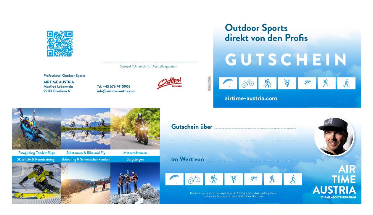 Mit dem Outdoor Sports Gutschein von AIRTIME AUSTRIA verschenkst du mehr als nur ein Abenteuer – du verschenkst unvergessliche Erlebnisse voller Leidenschaft, Natur und Freiheit.